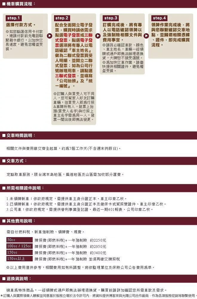 l 100~125c.c.___【領牌費+一年期強制險+過戶費+代辦手續費+定點取車運費】需另付3000元