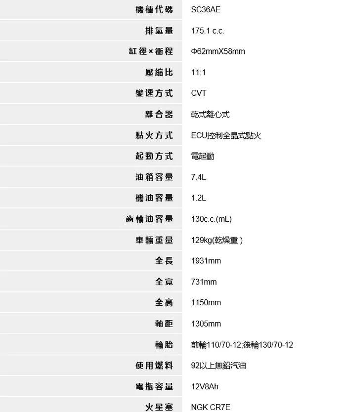實際規格及配備以實車為準(以KYMCO光陽機車官網公告之車輛圖片、車色、貼紙、配備為準)。